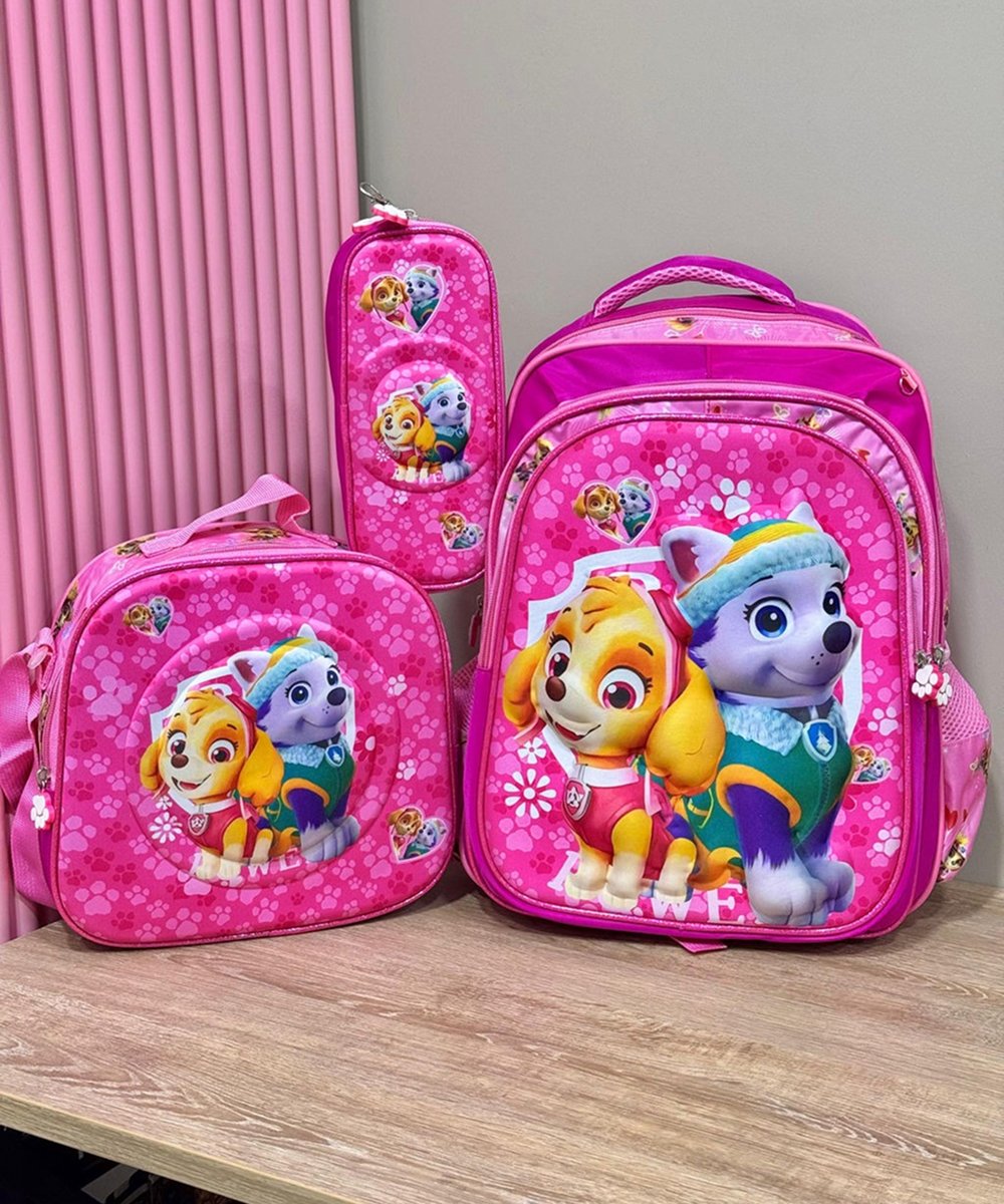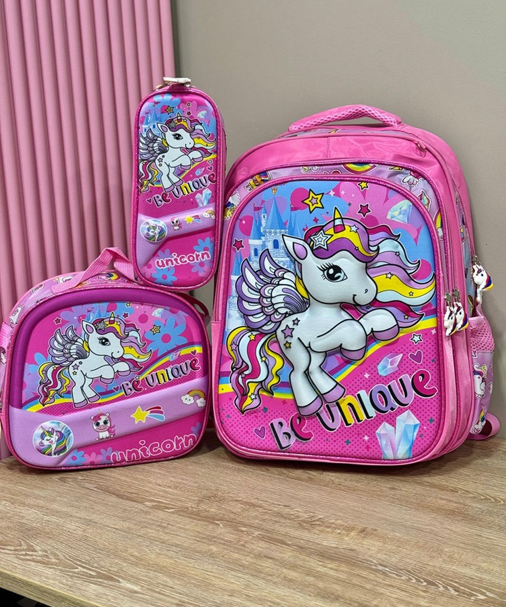 Trío escolar grande en alto relieve 3D, diseñado para brindar mayor espacio, comodidad y resistencia. Ideal para niños y niñas, con diseños llamativos y funcionales para el día a día escolar.