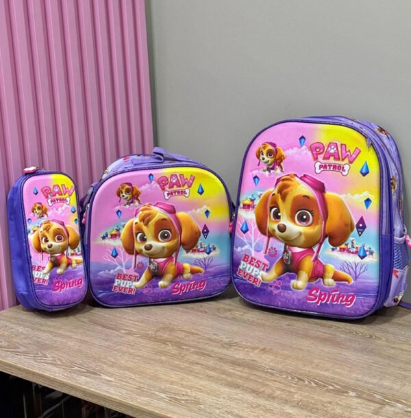 Trío escolar pequeño importado en alto relieve 3D, ideal para los más pequeños. Combina diseño, practicidad y excelente calidad, ofreciendo el tamaño perfecto para una jornada escolar cómoda y organizada.